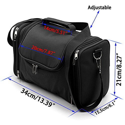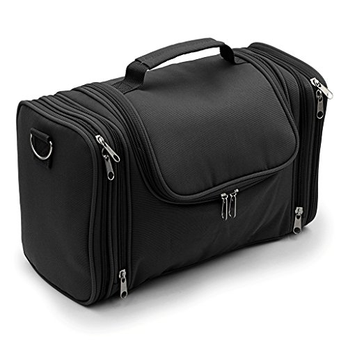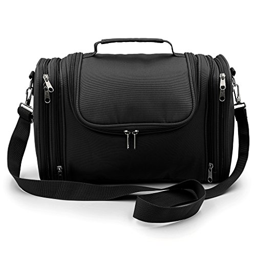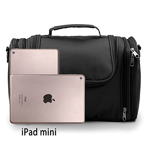 - UNIQUE STYLISH DESIGN - Hipiwe new large toiletry kit organzier is design with Shoulder Strap, Metal Hook and Carrying Handle. Adjustable and removable shoulder strap for easy transportation. Interior reinforced hanging hook makes it easy to store on towel racks, shower rods or on door knobs. Durable carrying handle can be carried by hand, hung up on bedroom or bathroom door handles. Ideal for vacation, business, gym, camping and bathroom organization.