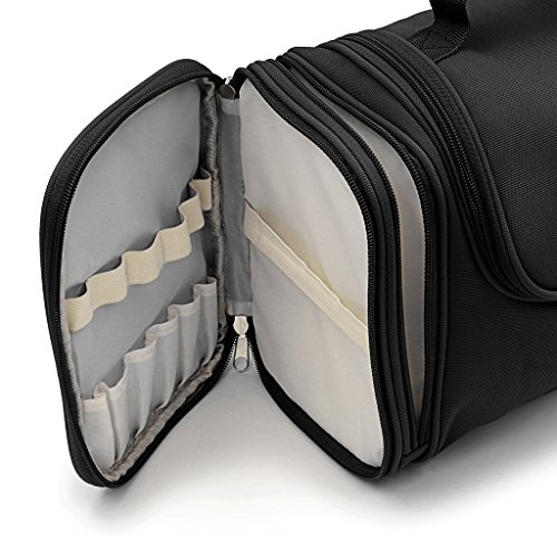 Hipiwe Hanging Travel Toiletry Bag / Shaving Grooming Dopp Kit / Makeup Bag Organizer / Household Bathroom Storage Pack for Business and Vacation(13.39" x 6.1" x 8.27")(Black)