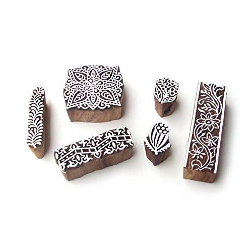 -. Title : Border and Square Designer Motif Block P.R.Int Wood Stamps (Set of 6)