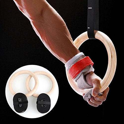 FEM0R Wood Gymnastic Rings with numbered Cam Buckle Straps, Great For Workout, Strength Training, Fitness, Pull Ups and Dips (Wood - 1.25")
