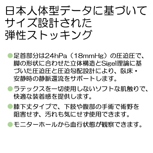 ●日本人体型データに基づいてサイズ設計された弾性ストッキング
