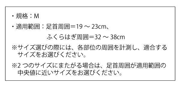 ●※2つのサイズにまたがる場合は、足首周囲が適用範囲の中央値に近いサイズをお選びください。