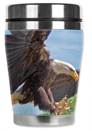 Mugzie Attacking Eagle "Mini" Travel Mug with Insulated Wetsuit Cover, 12 oz, Black
