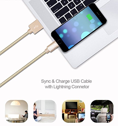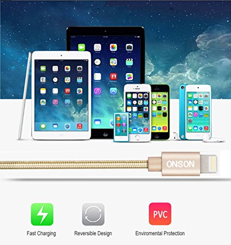 ONSON iPhone Cable,2Pack 10FT Nylon Braided Apple Lightning Cable USB Cord Charging Cable for iPhone 6/6S/6 Plus/6S Plus,5/5S/5C/SE,iPad 4 Mini Air (Gold)