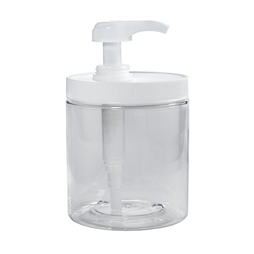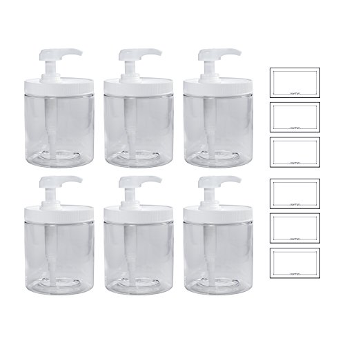 Clear 19 oz PET Plastic (BPA Free) Large Refillable Jar with Heavy Duty Twist Lock Cream Lotion Pump - (6 pack) + Labels