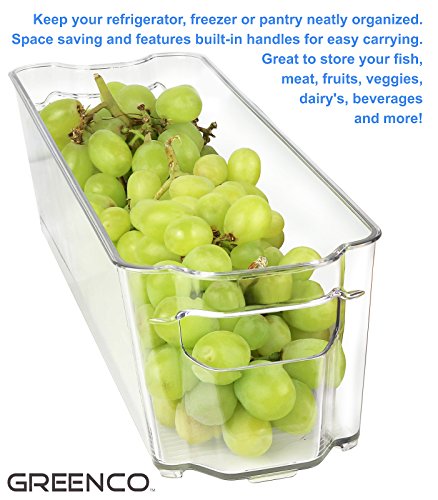 Greenco Refrigerator and Freezer Narrow Storage Bin with Handles- 14.5" x 3.5" x 3.75", Clear