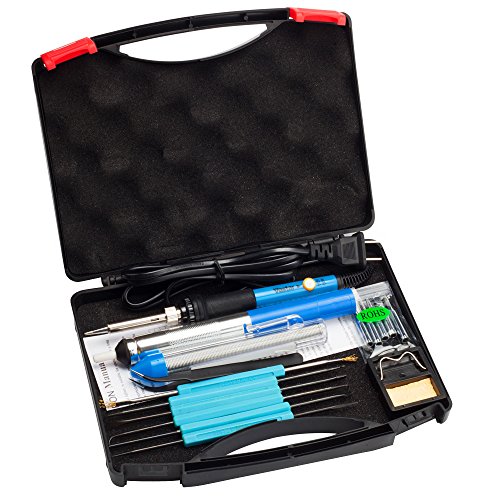 Vastar 16-in-1 60W 110V Adjustable Temperature Welding Soldering Iron with Desoldering Pump, 5pcs Different Tips, Stand, Anti-static Tweezers, Additional Solder Tube, and Carry Case