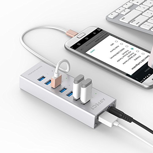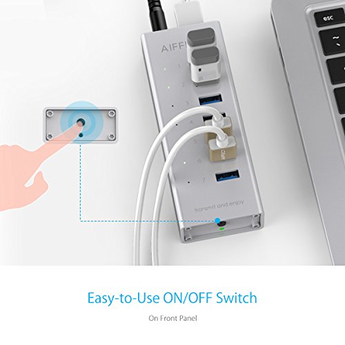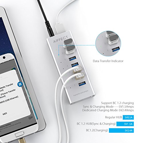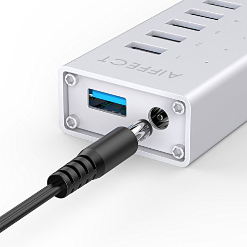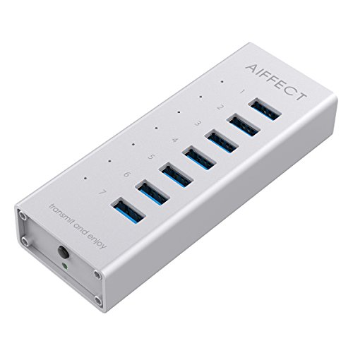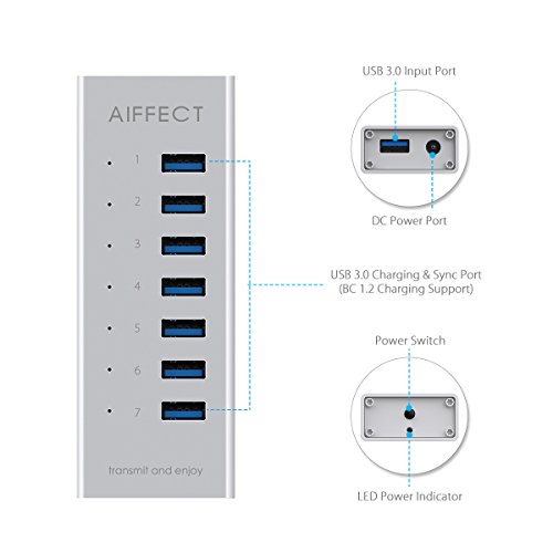 AIFFECT USB 3.0 Aluminum 7-Port Hub with BC 1.2 Charging Support and 3.3Ft USB Cable - Silver