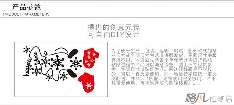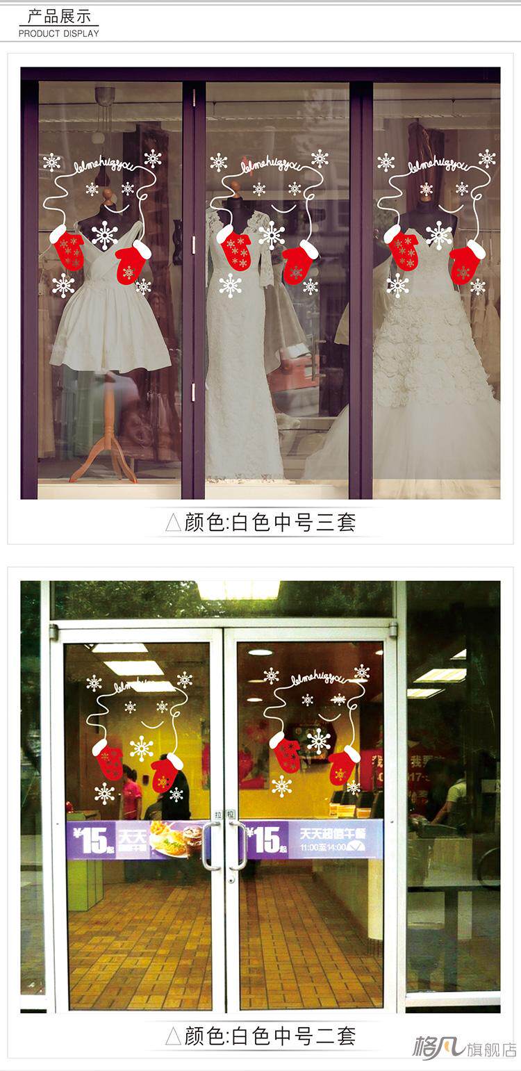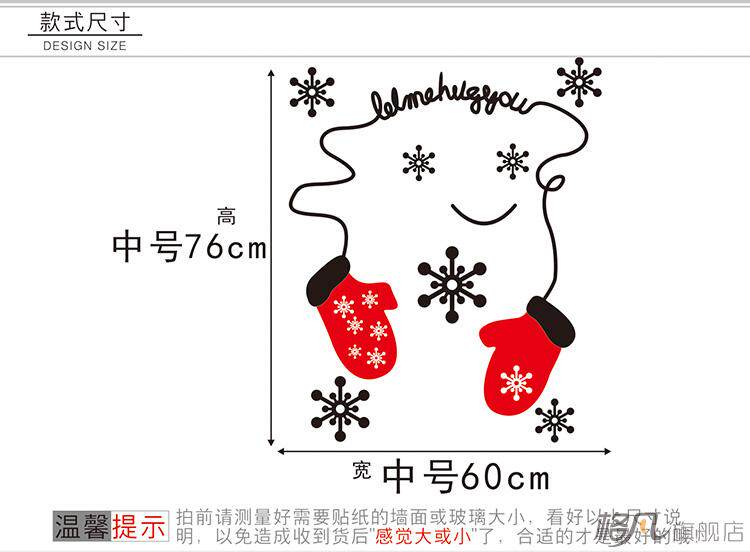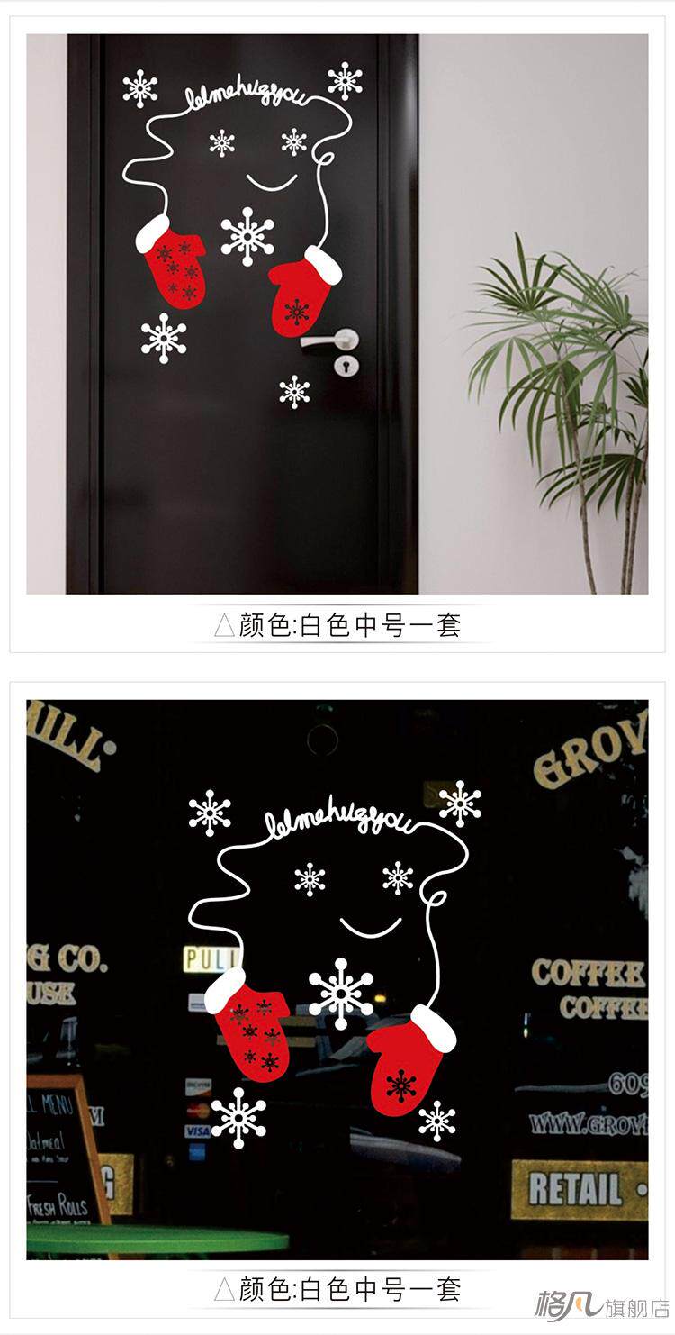 可爱手套雪花圣诞节贴纸节日气氛装饰品布置圣诞节橱窗墙壁贴画