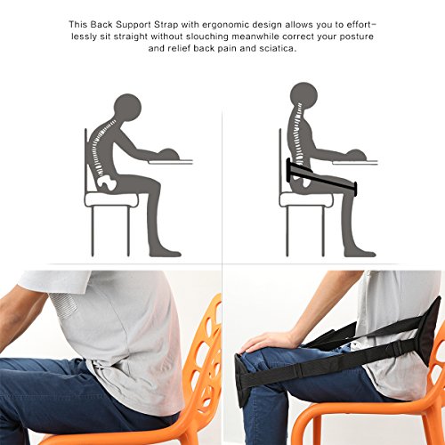 -. Feature : ADJUSTABLE WAIST PROTECTION - This Back Support Strap with ergonomic design allows you to effortlessly sit straight without slouching meanwhile improve and correct posture reduce waist discomfort or lower back pain literally. / PORTABLE AND COMPACT - Portable zipper pocket design and lightweight allows you to take it wherever you go. Just takes 30 seconds to wear it. Size can be adjusted,whether you are a thin women or a strong man, you can easily use it. / PERFECT POSTURE - Whenever you're at your desk,on a plane/train, in the office/home,or at a game, using 15 mins a day, Not only can save you a lot of treatment costs, but also help you develop good posture habits to enhance your temperament. / CARE YOUR BACK - Breathable back pad and knee pad with sponge inside, comfortable for wearing. Length of each strap up to 138cm / 4.5ft. / MAIN USER - Suitable for anyone who sits with a wrong posture and always sits for a long time especially for the office staffs, or someone suffers from lumbar disease.