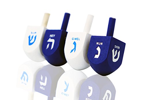 (The Dreidel Company)/Activities Amusements/Spinning Tops/DIRECT FROM USA/Let's Play Dreidel The Hanukkah Game 4 Blue White Solid Colored Hand Painted Wooden Dreidels ...