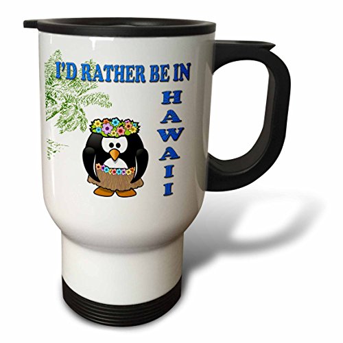 3dRose tm_216431_1 Id rather be in Hawaii. Hawaiian flower. Popular saying-Travel Mug, 14 oz, Stainless Steel, White