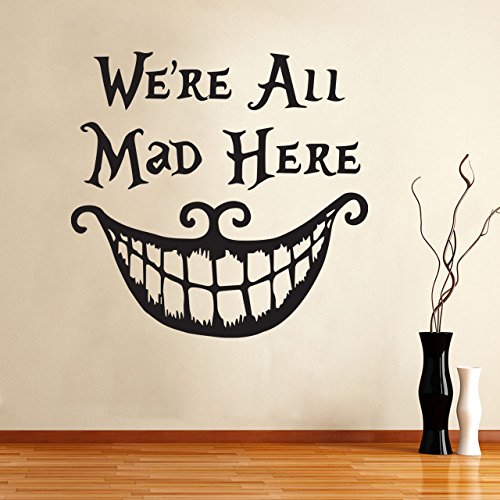-. Title : Alice In Wonderland Wall Decal Quote Cheshire Cat Sayings "We're All Mad Here" Vinyl Decals Living Room Wall Sticker Home Decor