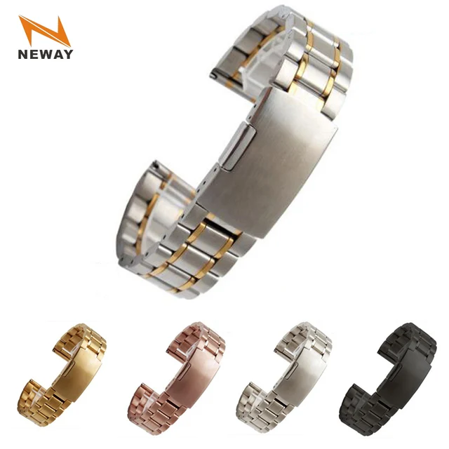 | [해외]Neway 스테인레스 스틸 시계 밴드 실버 블랙 골드 시계 스트랩 팔찌 남성 여성 손목 14 16 18 20 22 24 미리메터 Relojes |
