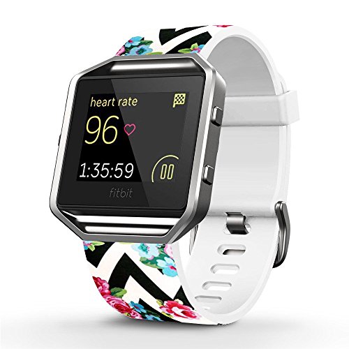 -. Title : Fitbit Blaze Accessories Classic Band Large, Soft Leather Replacement Sport Strap Band with Quick Release Pins for Fitbit Blaze Smart Fitness Watch Elegant Pink Rose Flower Pattern