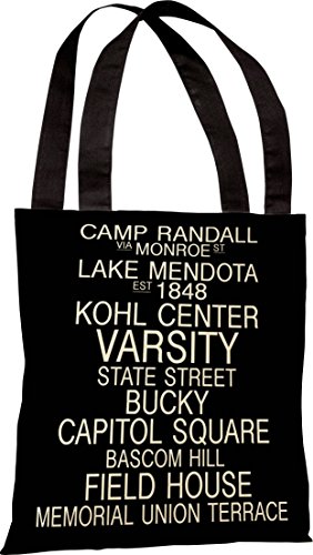 One Bella Casa Madison Wisconsin Landmarks Tote Bag by OBC, 18"x 18", Black/White