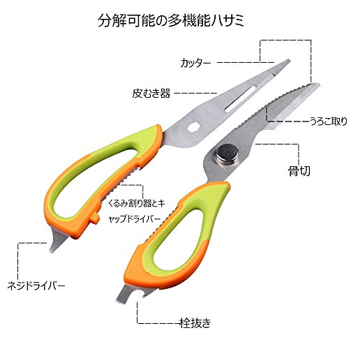 원본상품명: HAMENG キッチンばさみ皮むきピ?ラ?栓?き/マグネットケ?ス付/多機能キッチンはさみ