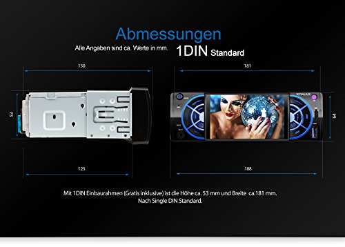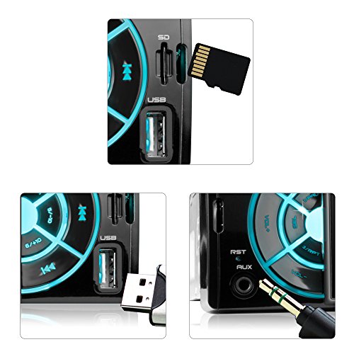 -. Feature : Anschlussmöglichkeit für eine Rückfahrkamera/Einparkhilfe + Video out / USB-Anschluss und Micro SD-Kartenslot - jeweils bis zu 32GB pro Medium für MP3, WMA, MP4 und AVI / 7 LED Beleuchtungsfarben frei einstellbar - blau, rot, grün, gelb, türkis, lila, weiß / 1 DIN Standard Einbaugröße + inkl. Einbaurahmen, Blende und Fernbedienung / Ganz ohne CD-Laufwerk - unkompliziert, schnell und immer aktuell.