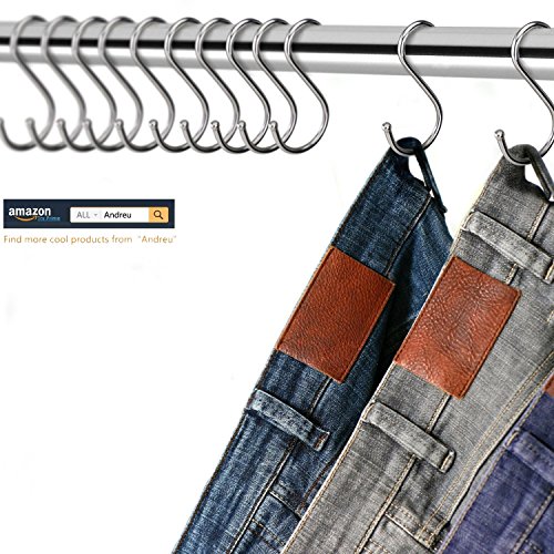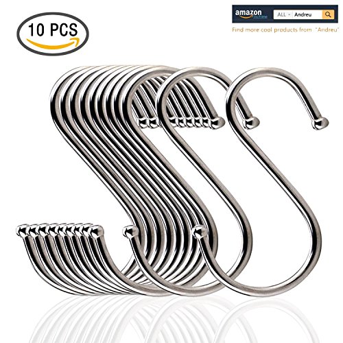 Andreu 10-Pack Premium Stainless Steel Metal S Hooks Kitchen Pot Pan Hanger Clothes Storage Rack Polished For Your Pots And Pans, Utensils, Towels, Ties And Much More. (3.9 inches)