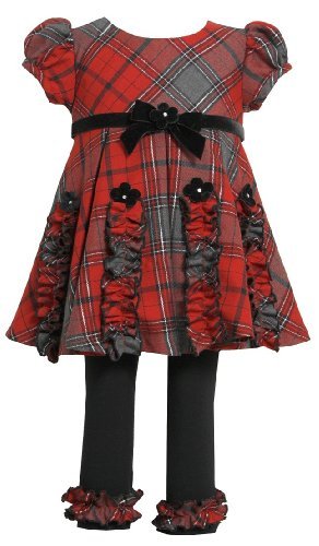 -. Title : Bonnie Jean Girls Ruched Plaid Dress & Legging Outfit, Red