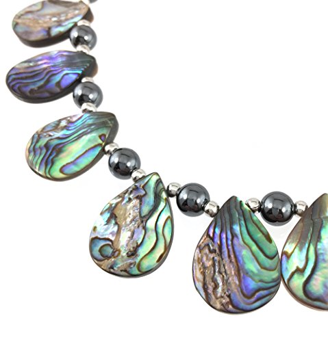 22 inch Paua Abalone Shell Necklace Real Abalone Shell tear drop shape beads. Beautiful Iridescent Blue-Green Color. Due to the nature of real shell jewelry the tear drop beads vary from flat to curled.