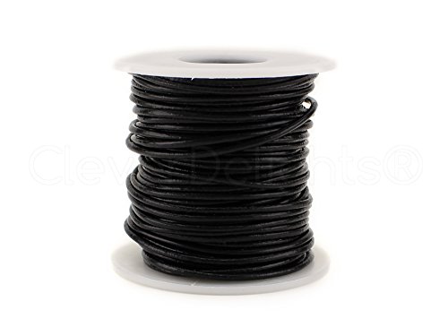 CleverDelights Black Round Premium Genuine Leather Cord - 2mm - 10 Meters (11 Yards) - Beading Jewelry