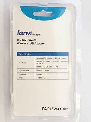 -. Binding : Wireless Phone Accessory -. Brand : Fenvi -. Color : FV150 -. EAN : 0645195970419 -. Feature : Multi-Directional & Wide Coverage,High Speed Dual Band,Works with all wireless routers using IEEE 802.11b/g/n,High security encryption using WPA2/WPA/WEP / Wireless LAN adapter for wireless communication,For use with Blu-ray players and Home Theater systems / IEEE802.11b/g/n standard compliance,2.4 GHz band frequency range,Power Supply DC 5V (USB),Strong signal integrated antenna,High Speed USB 2.0 Connection / Only for Panasonic AV products / Not for use with a TV or a PC -. Label : Fenvi -. Manufacturer : Fenvi -. MPN : FV150 -. PackageQuantity : 1 -. PartNumber : FV150 -. ProductGroup : Wireless -. ProductTypeName : WIRELESS_ACCESSORY -. Publisher : Fenvi -. Studio : Fenvi -. Title : Fenvi Wireless LAN Adaptor for for Panasonic Blu-ray Players Panasonic DY-WL5 Replacment Only for Panasonic AV Products NOT for use with a TV or a PC -. UPC : 645195970419