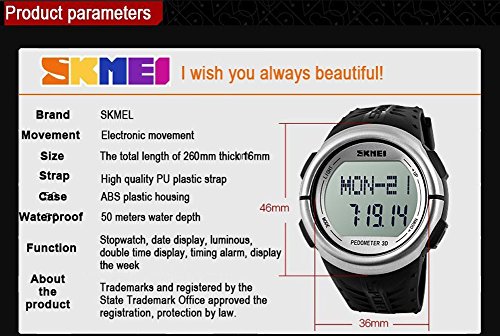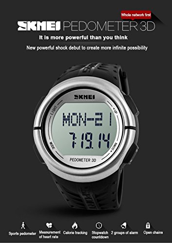 -. Feature : The calorie watch is the first and only watch that can calculate your heart rate and calories burned while exercising without the need of a chest strap / Feature:Stop Watch,Back Light,Shock Resistant,LED display,Chronograph,Complete Calendar,Diver,Heart Rate Monitor,Water Resistant,AlarmThis multi-function wrist watch can meet your various needs. Apart from being able to be used as an ordinary watch, it is also designed with the functions of sensoring your pulse. It is useful to help you keep fit / Exercise Intensity input for Calories analyzing,Exercise Counter with Automatic and Manual override Calorie Counter / Display current Time & Calendar with Alarm and Hourly Chim Great complements for football, Yoga, Swimming, Ice skating, Step aerobics, Soccer, Squash etc. / 1 ×Watch 1,× SKMEI Gift Box.Best Gift family,friends,lovers