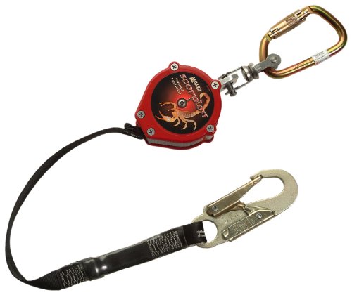 -. Binding : Tools & Home Improvement -. Brand : Miller -. Color : Red -. EAN : 0612230153007 -. Feature : Greater versatility through dual operation, attached directly to the harness D-ring for use as a personal fall limiter, or used as a traditional retractable lifeline / Quick-activating, high-strength stainless steel braking system arrests free falls / 9-feet (2.7 meters) of working capacity / No annual factory recertification required / Visual load indicator indicates when the unit must be removed from service -. Label : Miller -. Manufacturer : Miller -. Model : PFL-4-Z7/9FT -. MPN : PFL-4-Z7/9FT -. NumberOfItems : 1 -. PackageQuantity : 1 -. PartNumber : PFL-4-Z7/9FT -. ProductGroup : Home Improvement -. ProductTypeName : TOOLS -. Publisher : Miller -. Size : 9-Foot -. Studio : Miller -. Title : Miller PFL-4-Z7/9FT Scorpion 9-Foot Personal Fall Limiter with Carabiner and Swivel Shackle, Red -. UPC : 612230153007