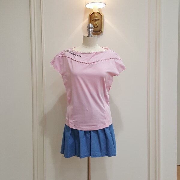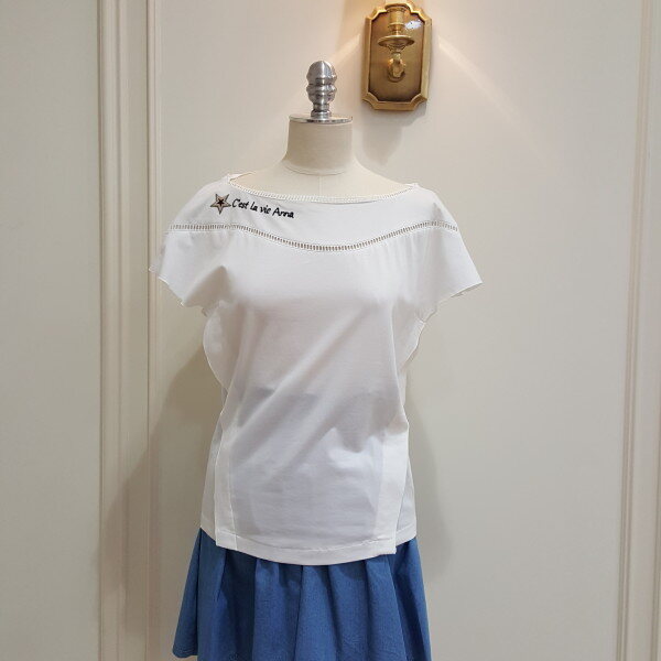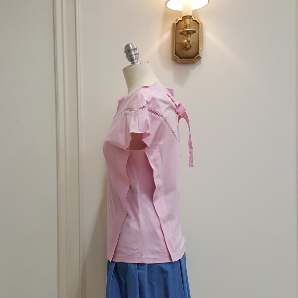 날씬해 보이는 실루엣의 저지탑.뒷판 네크의 리본을 묶어서 연출해 주세요
