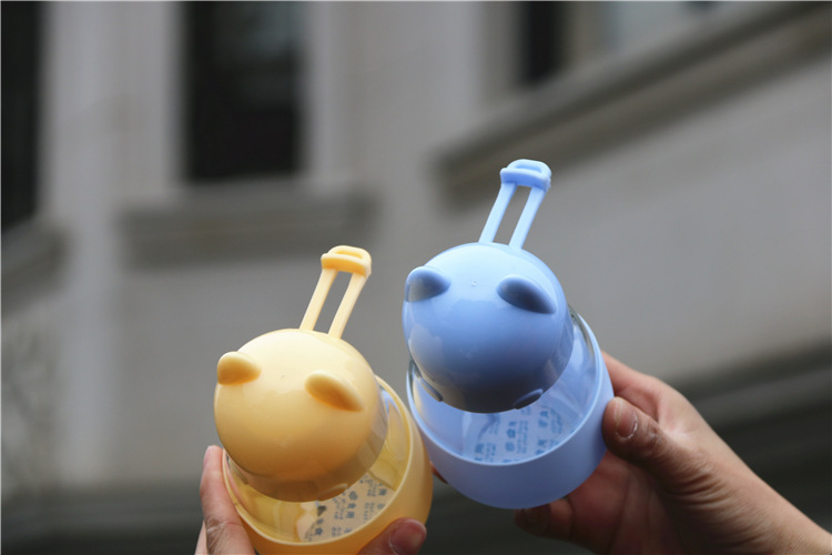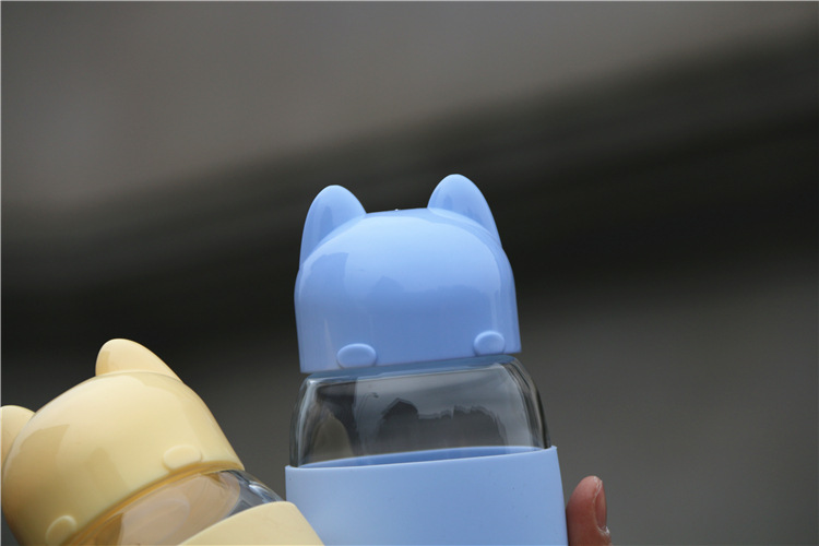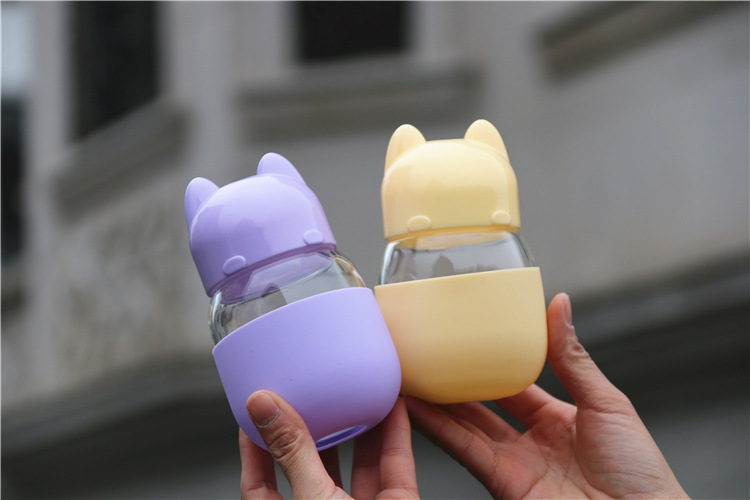 迷你可爱卡通玻璃杯创意带盖提绳便携水杯男女学生牛奶杯花茶隔热