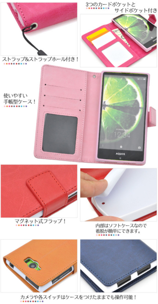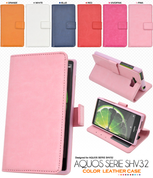 AQUOS SERIE SHV32用カラーレザースタンドケースポーチ。
