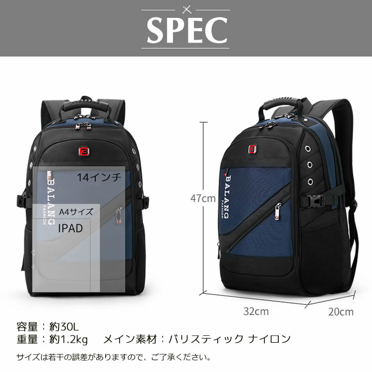 通勤、通学、ビジネス、出張、旅行に使い勝手のバックパック。