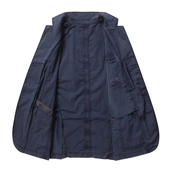 - 빈티지한 텍스쳐 디자인을 적용한 남성 자켓.