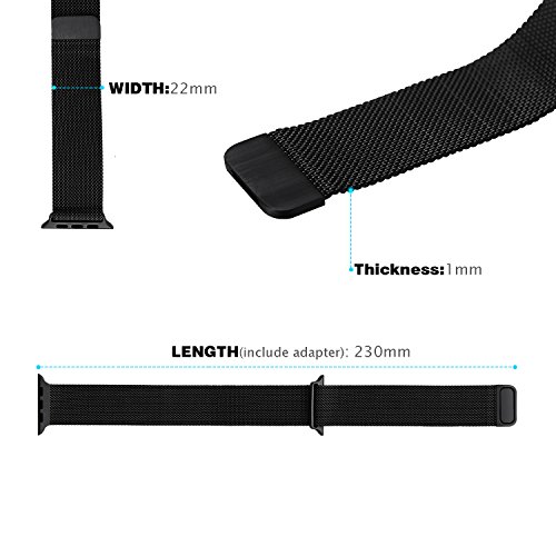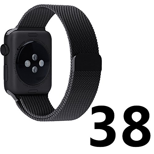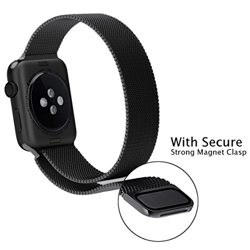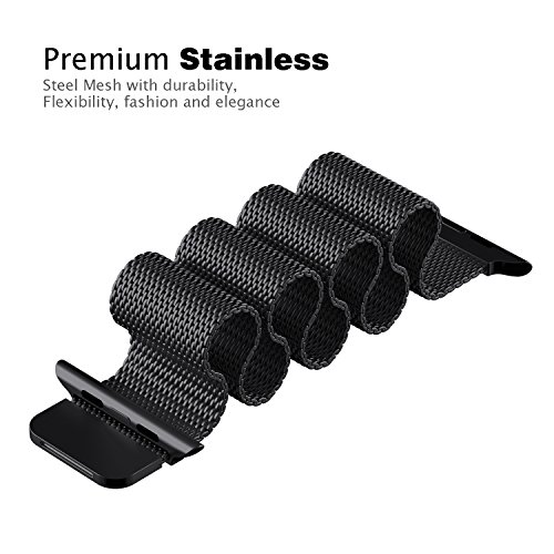 Apple Watch Band, BRG Fully Magnetic Closure Clasp Mesh Loop Milanese Stainless Steel iWatch Band Replacement Bracelet Strap for Apple Watch Sport & Edition 38mm - Black