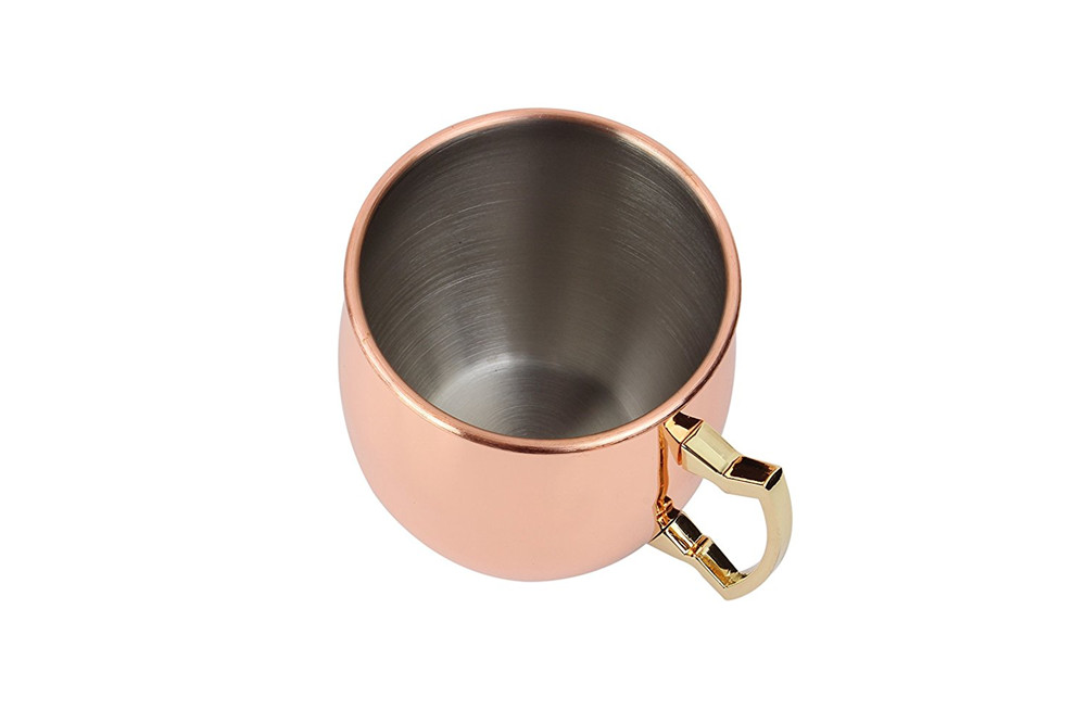 - Elegant And Stylish Design: Copper-clad stainless steel is cast to make a classic Moscow Mule Copper Cocktail Mug, complete with an intricate golden-hued zig-zag handle.