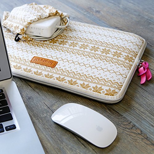 Inateck 13.3 Inch Bohemian Macbook Air/ MacBook Pro Retina Ultrabook Netbook Envelope Cover Sleeve Carrying Protector Case Bag with a Bonus Mouse Bag, Simple White [Size: 13.3-Inch, Canvas Fabric]