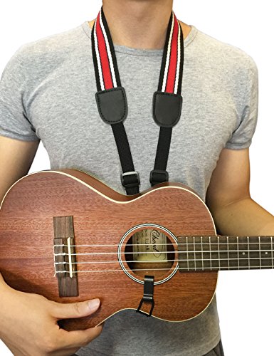 Adjustable Ukulele Strap Without Any Installation Easy to Use Leather & Cotton Ukulele Neck Strap with 3 Ukulele Picks