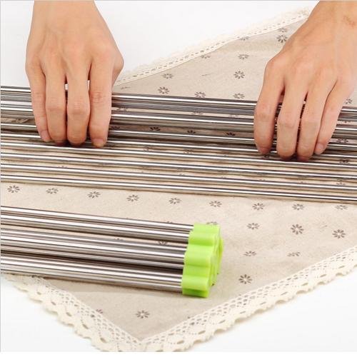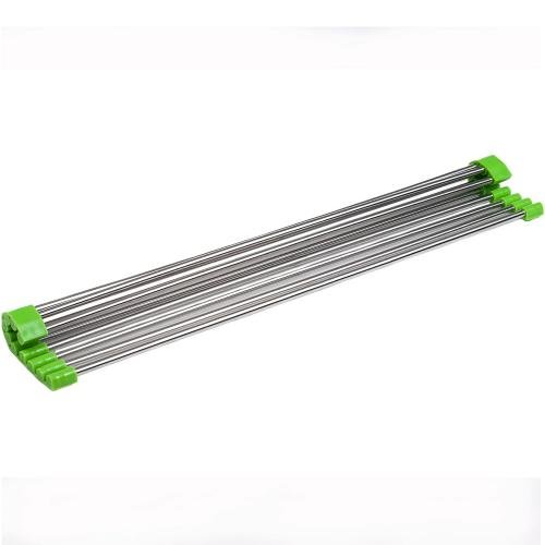 -. Feature : Foldable design / Small and compact / Stainless Steel / Can be placed over sink / Great way to dry fruits and vegetables