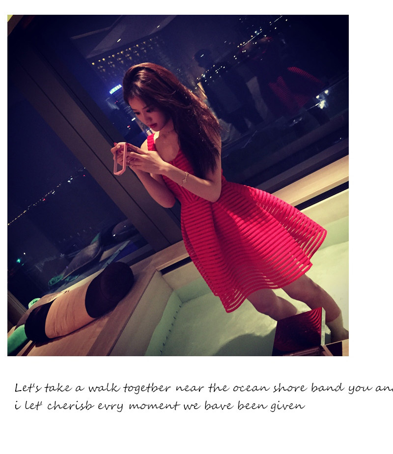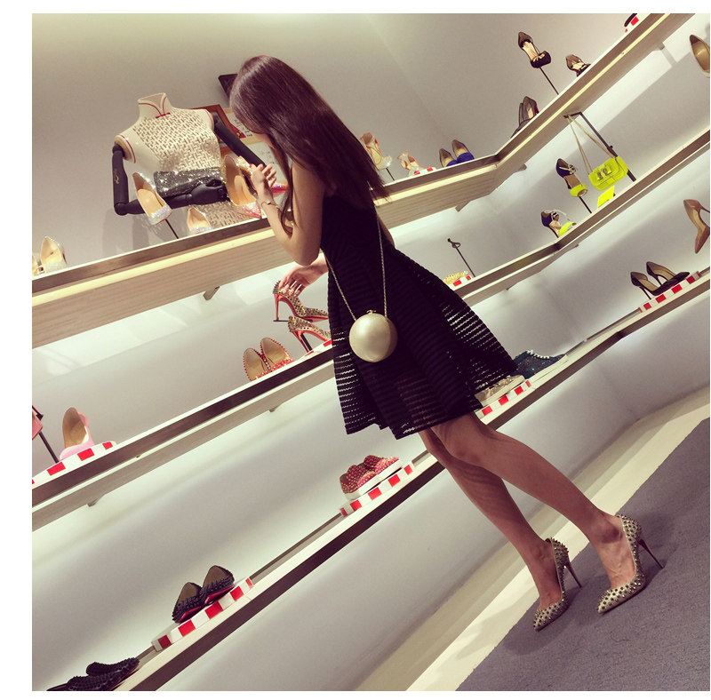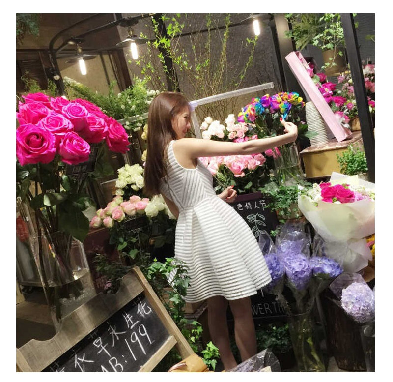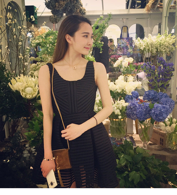 2016夏季新款韩版小香风圆领镂空a字裙无袖高腰背心裙蓬蓬连衣裙