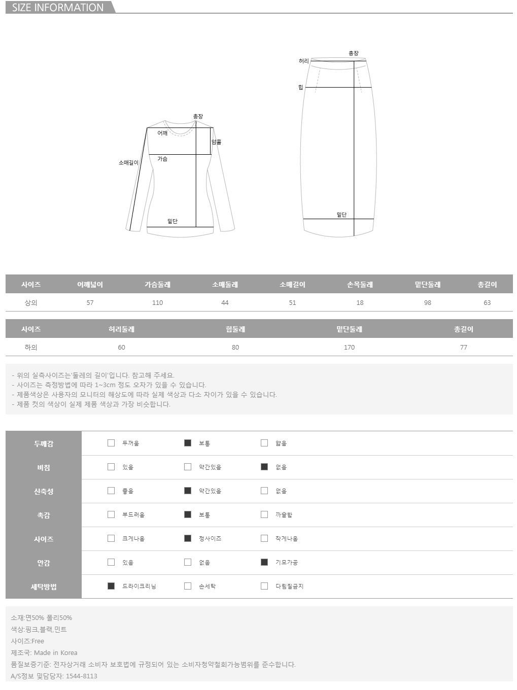 상 하의 세트로 단독으로 활용 가능한 가성비 갑 아이템이에요~