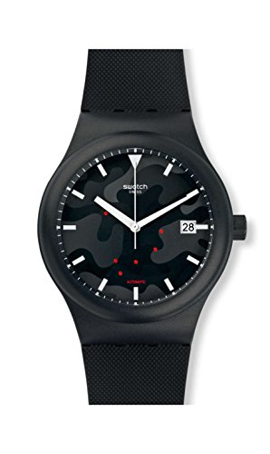 Product Description The SISTEM CLOUDS (SUTA401) watch starts with a camo-patterned dial featuring anthracite coloring, white indexes and red accents. A matte anthracite-colored case and bezel, plus a matching textured strap complete the look. The best part? Just flip the watch over to peek at the fine Swiss craftsmanship underneath. 0