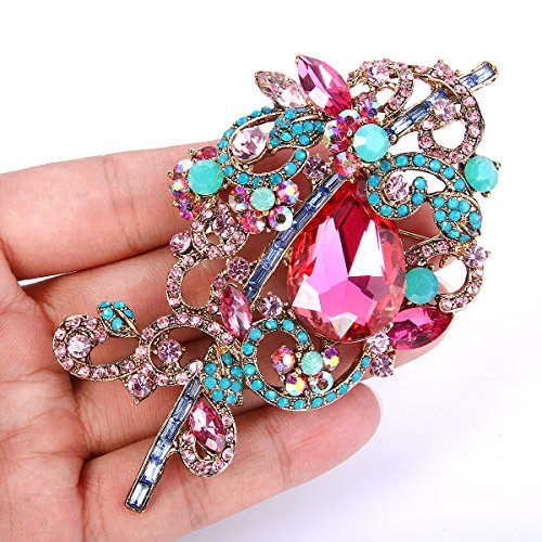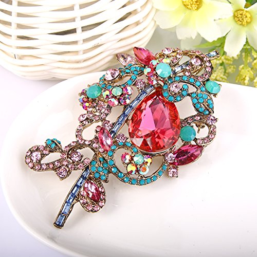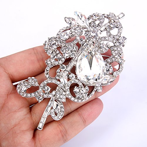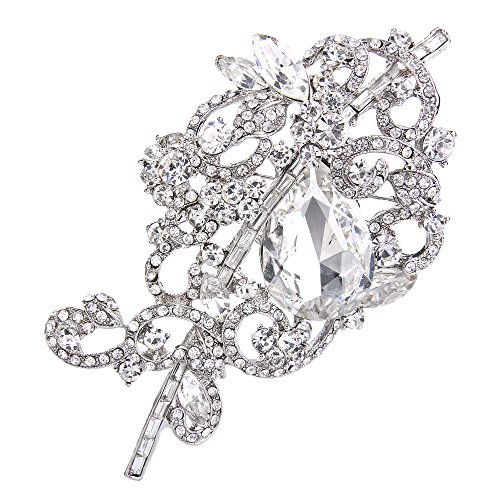 (EVER FAITH)/Accessories/Hats/DIRECT FROM USA/EVER FAITH Women's Rhinestone Crystal Floral Knot Leaf Vine Teardrop Brooch