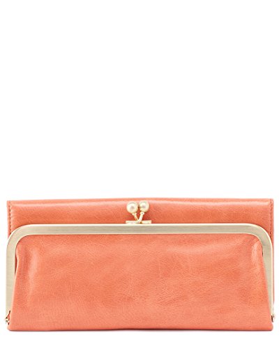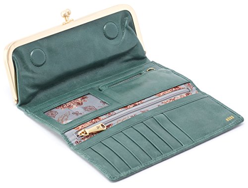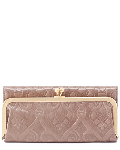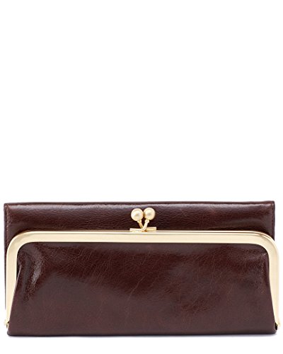 Superbly mixing class and function, this beautiful Rachel Clutch Wallet by Hobo transitions perfectly from day to night! This clutch is made from top-grain leather which has been extra tumbled for a unique, broken-in vintage look and shine. This fully lined clutch has a large exterior pocket with a brushed finish metal kiss lock closure. The interior features 8 card slots, 3 currency pockets, 1 clear ID window, 1 zippered coin pocket, and a slip pocket with a cosmetic mirror. Show off your vintage style with this gorgeous clutch! Measures 8.25" x 3.75" x 1.5", folds out to 11.25" wide.