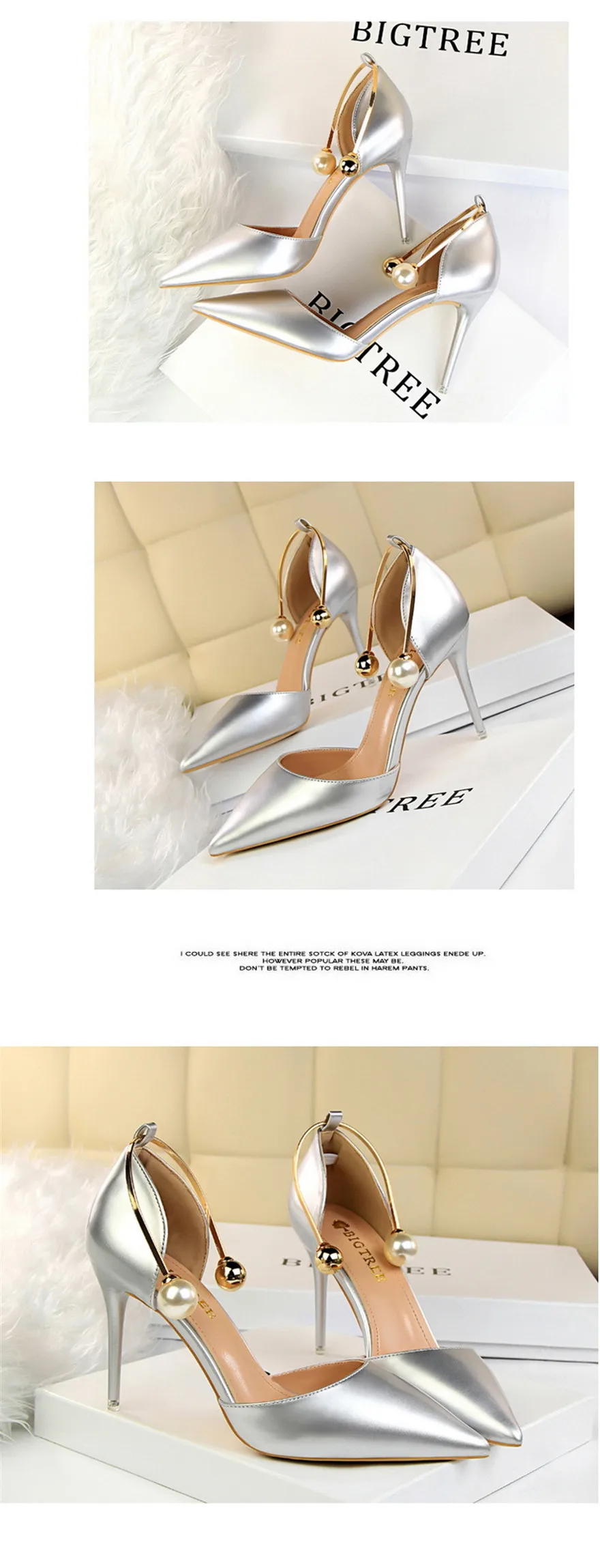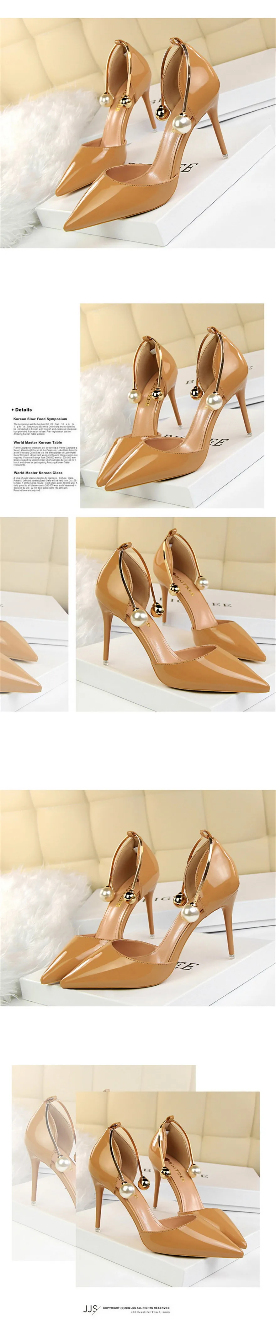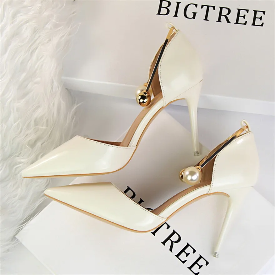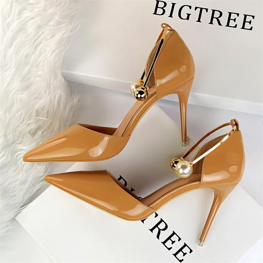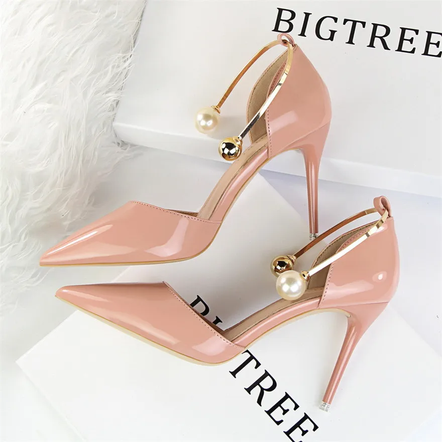 Item:Pointed Toe Brand Elegant Pearl Metal Buckle Show Thin Women's Sandals