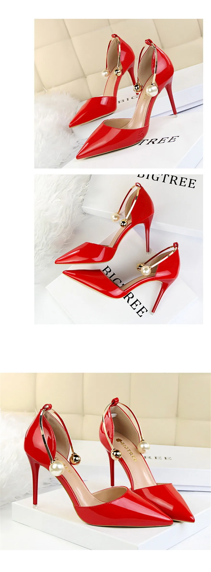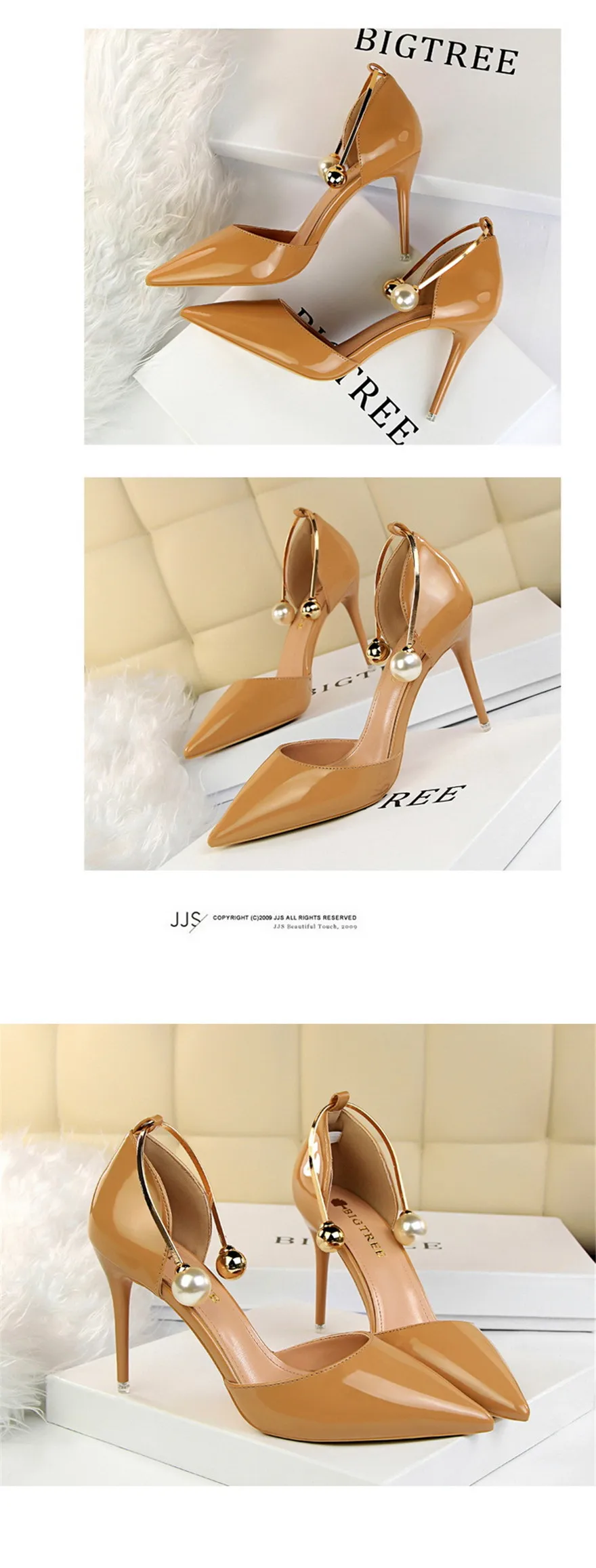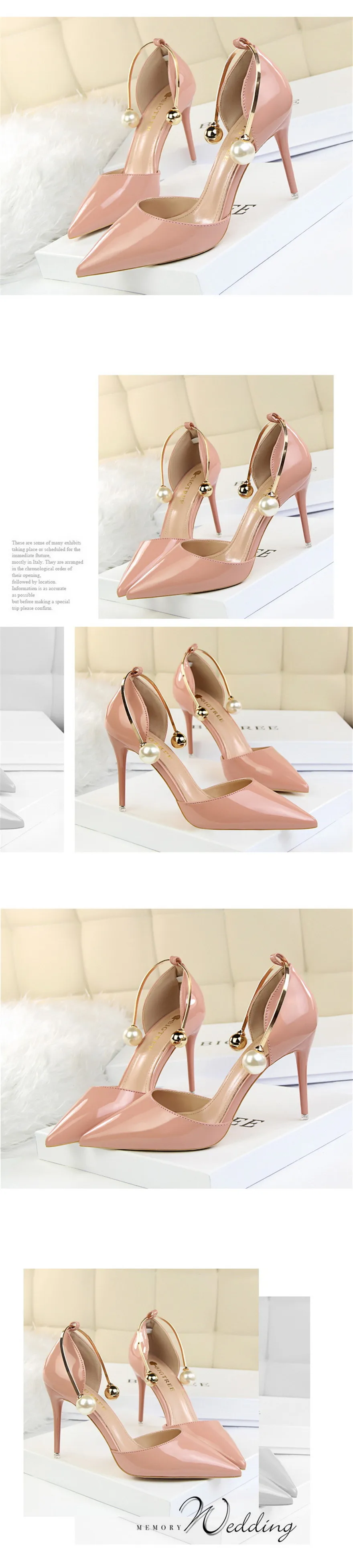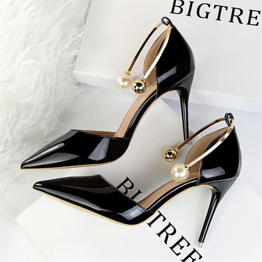 Item:Pointed Toe Brand Elegant Pearl Metal Buckle Show Thin Women's Sandals