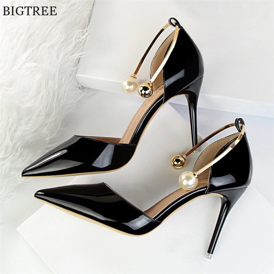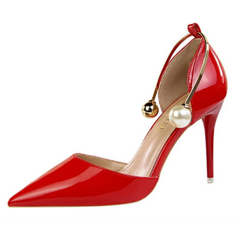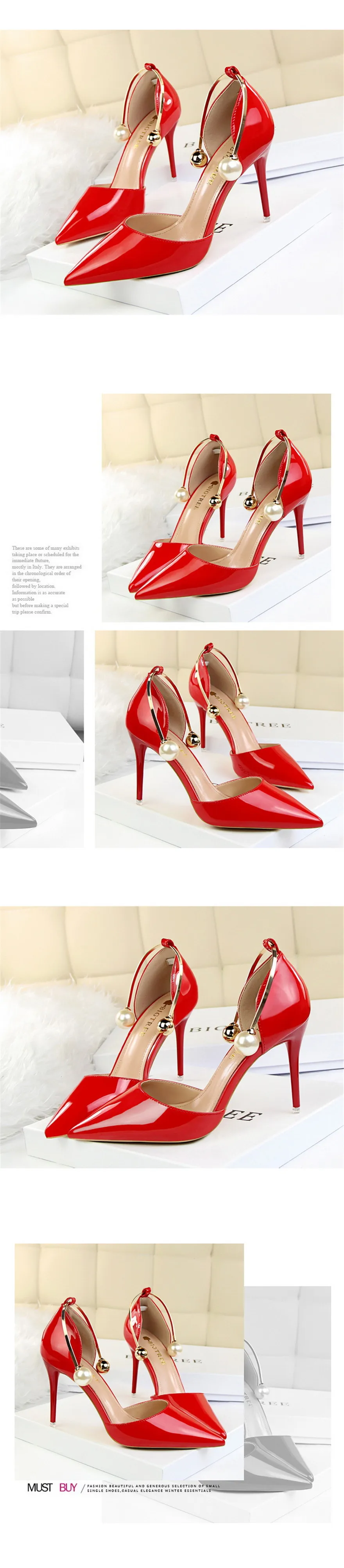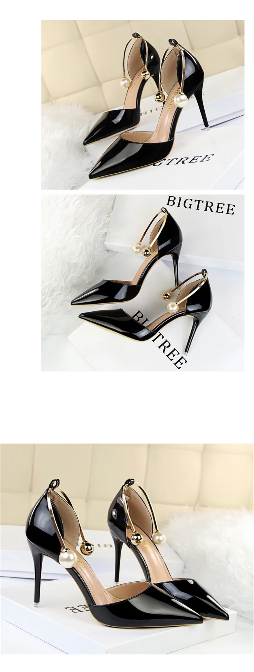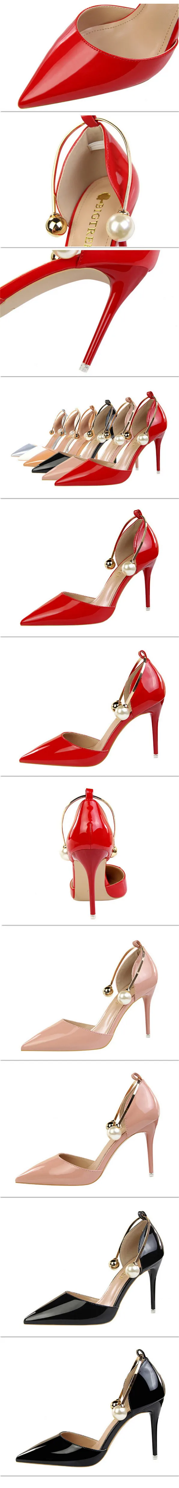 Item:Pointed Toe Brand Elegant Pearl Metal Buckle Show Thin Women's Sandals