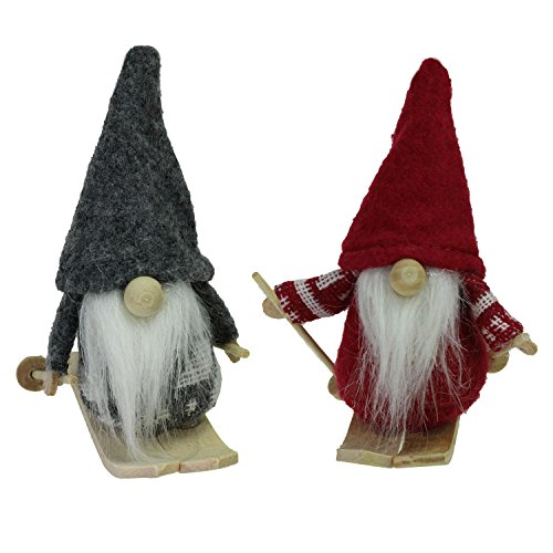 -. Title : Set of 2 Gray and Red Skiing Santa Gnomes Hanging Christmas Ornaments 4"