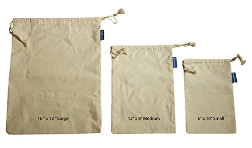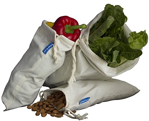 Owl Trail Organic Muslin Cotton Reusable Produce Bags 6 Pack (2l, 2m, 2s)