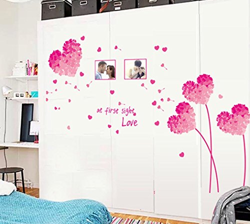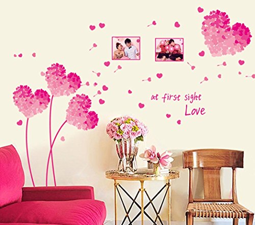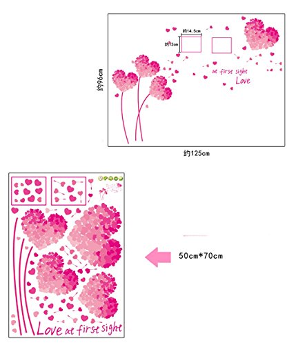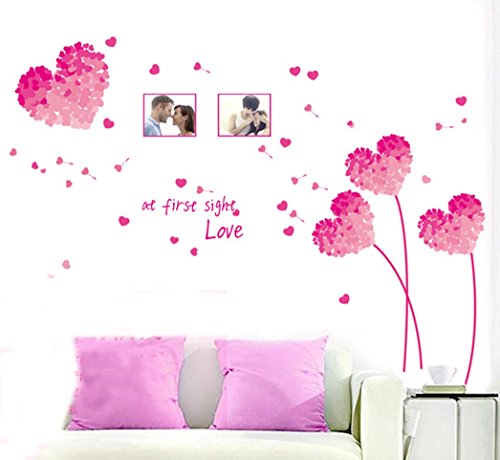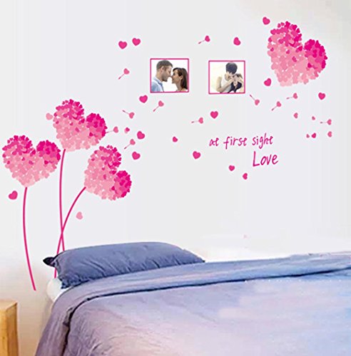 BIBITIME "At first sight Love" Valentines Day Photo Frame Wall Stickers Couple Lovers Bedroom Heart Flower Picture Frame Vinyl Decal for Living Room (DIY Size approx: 49.21" x 37.79", Pink)